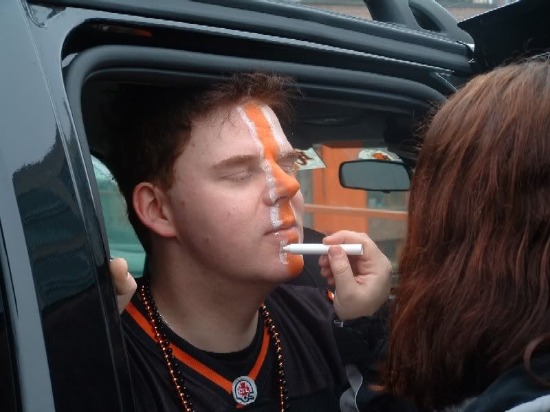 Since you don't tailgate exactly as we do, thought you might like to see us before and during the early part of the game this time, since this is the last kick at the cat, so to speak.